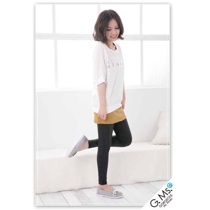 G.Ms. 蝴蝶結流蘇莫卡辛全真皮帆船鞋-灰色36號