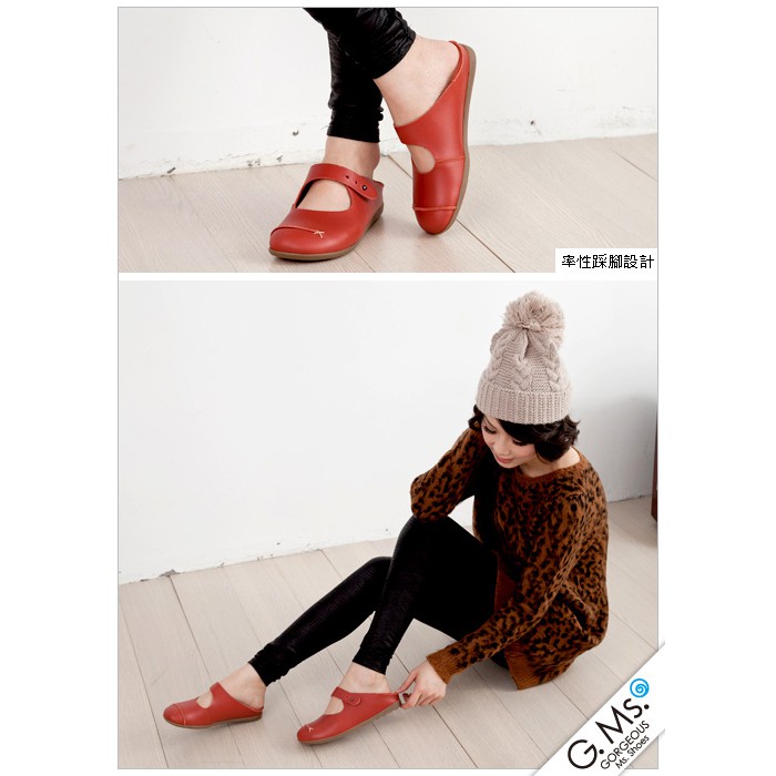 G.Ms. MIT系列-2way全牛皮圓頭休閒鞋-紅色