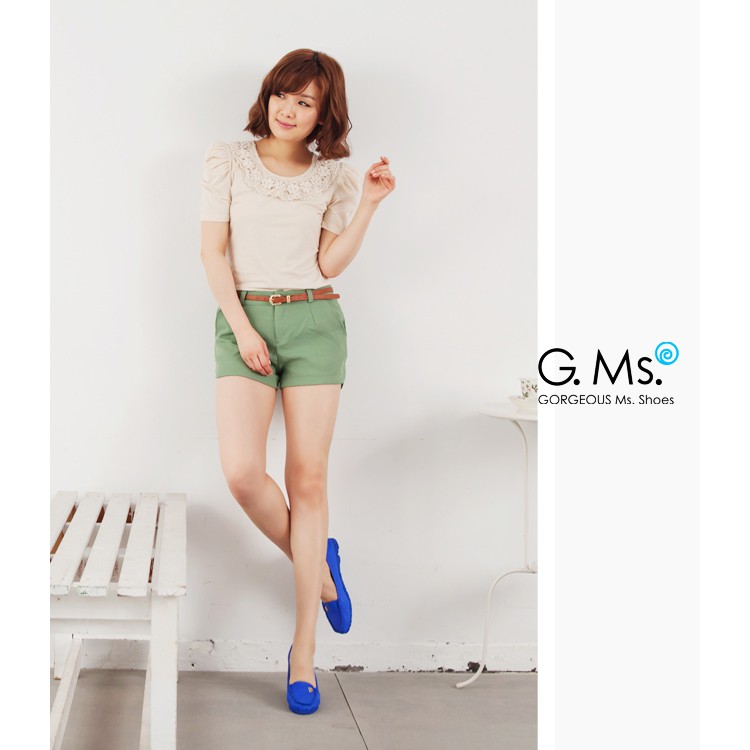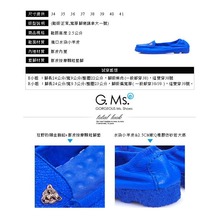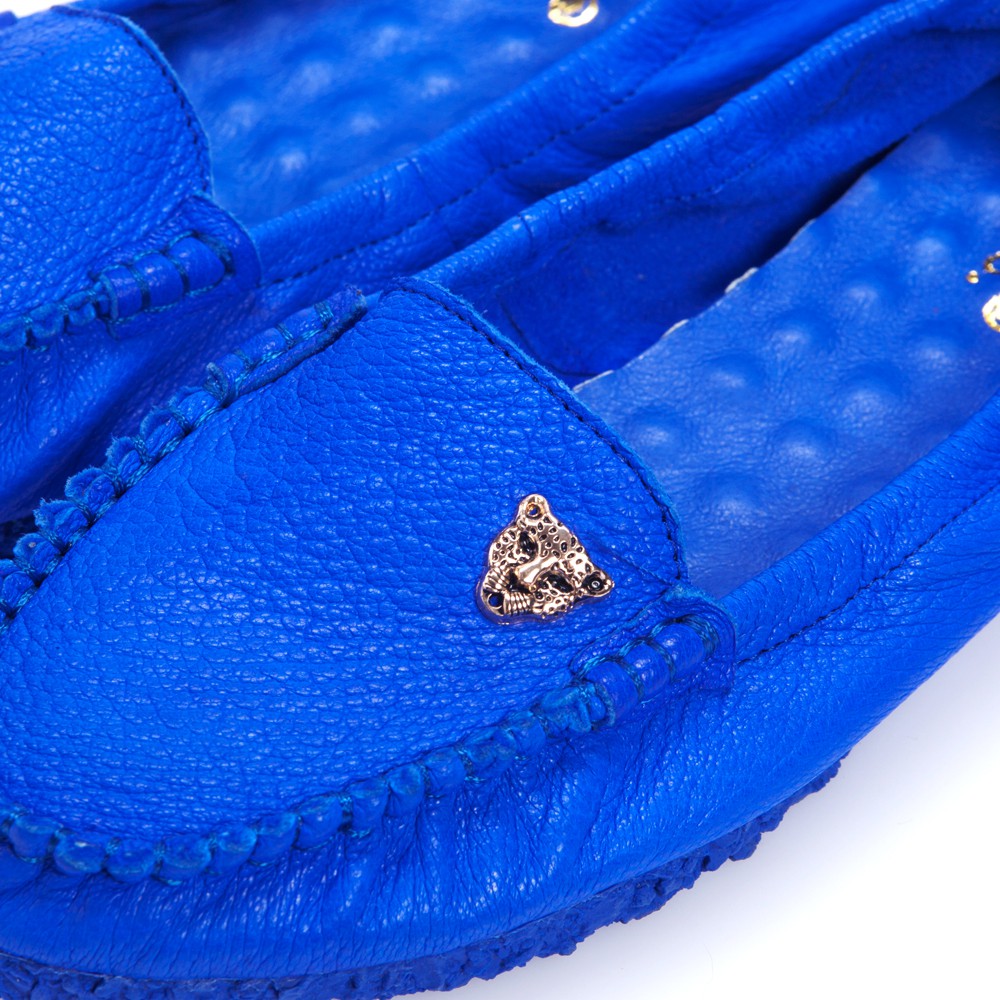 G.Ms. 金屬豹頭飾釦全真皮莫卡辛鞋-藍色35號