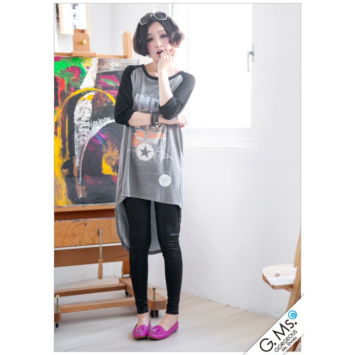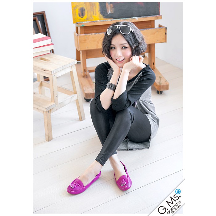 G.Ms. 蝴蝶結牛皮平底豆豆鞋-桃紅