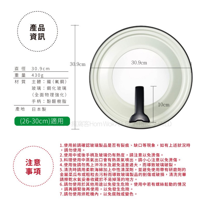 【YOSHIKAWA吉川】可站立式強化玻璃鐵製鍋蓋(適用26~30cm)YJ2030 日本製