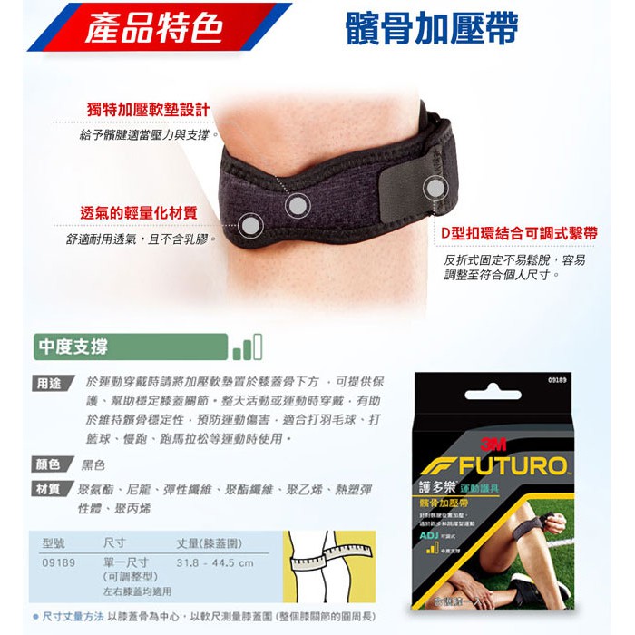 3M 護多樂 可調式髕骨加壓帶 09189 運動護具 單入 3M FUTURO 護具 可調式 舒適耐用透氣 台灣公司貨