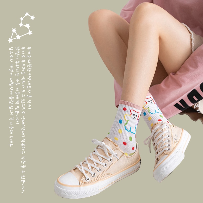 彩色熊熊 長襪【台灣現貨】D648 襪子 中筒襪 隱形襪 除臭襪 船型襪 短襪 男襪 襪子男 襪子女 彈性襪 潮襪 船襪