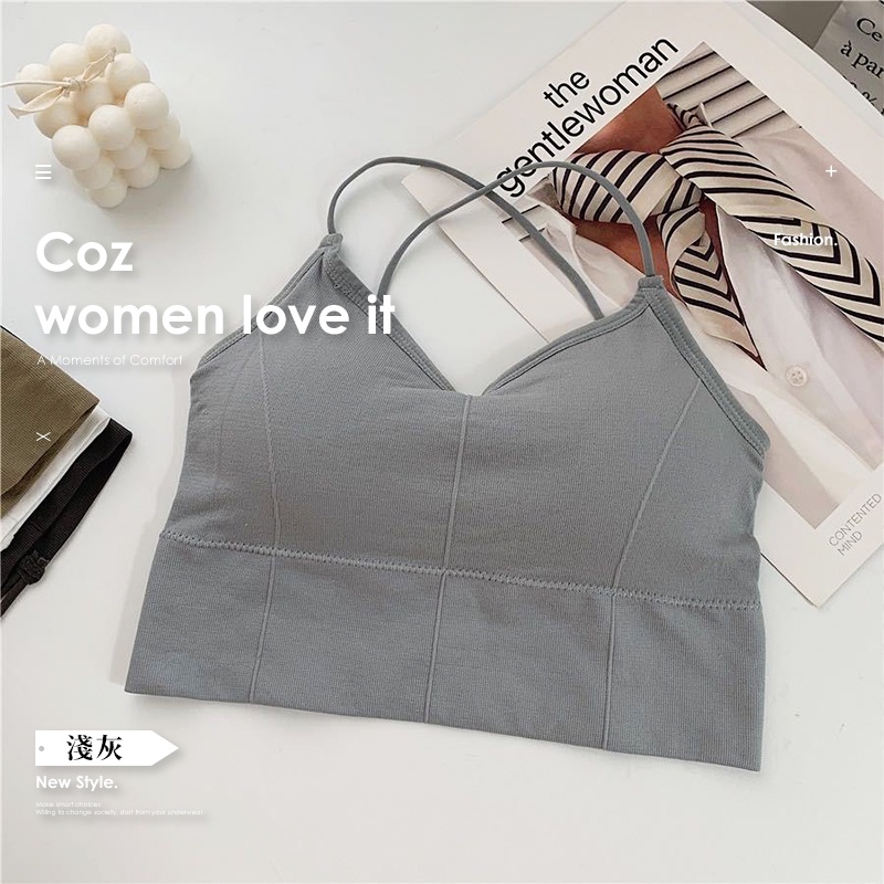 韓版美背交叉無痕背心 A03免穿內衣帶胸墊 細肩帶背心 內搭衣 吊帶 平口小可愛背心 內搭背心 美背 女裝 上衣 冰絲