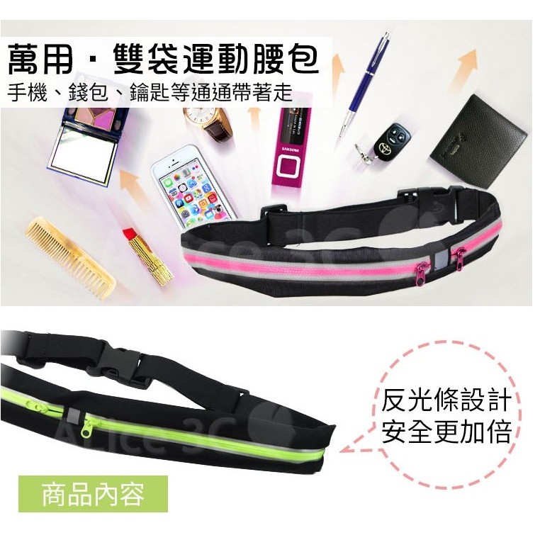 雙袋運動腰包 【FA-001】 彈力腰包 反光條 手機腰包 魔術包 隱形腰包