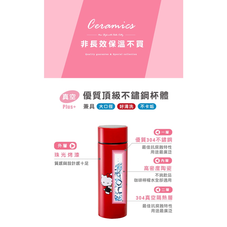 Hello Kitty凱蒂貓 硬白瓷不鏽鋼保冰杯/保溫杯 350ML 三麗鷗正版授權 KA-03