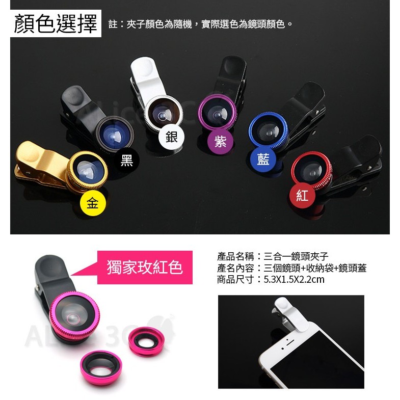 iPhone 可用 三合一鏡頭組【E2-005】魚眼 廣角 微距 手機外接鏡頭 多色可挑