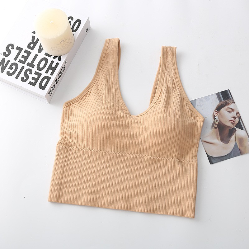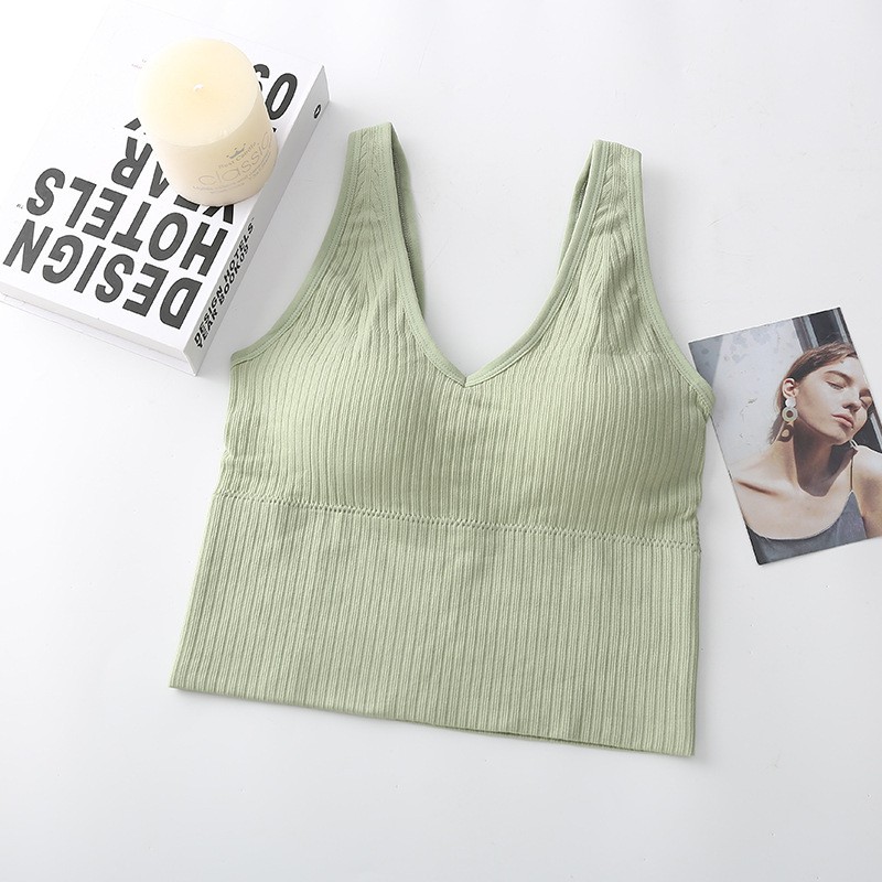 A0005螺紋V領運動內衣 V領無鋼圈 運動防走光 美背背心 有胸墊 透氣 四季風 女生內衣 小可愛