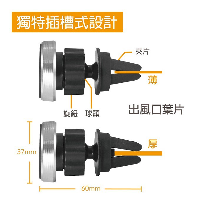 【迪克車架】出風口插式 強力磁吸鋁合金手機架(AV-02MG)