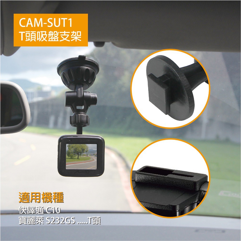 【迪克車架】CAM-SUT1行車紀錄器/衛星導航專用支架 T款頭吸盤支架