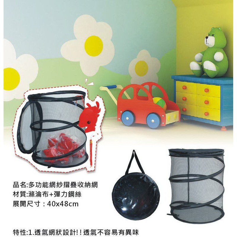 【Treewalker】多功能網紗折疊收納網 網紗收納網 玩具籃 洗衣籃 收納桶 雜物收納籃 黑色 竹節蟲 網籠