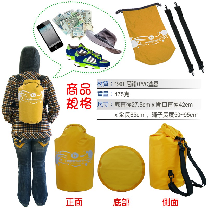 【Treewalker】雙肩防水漂浮袋30L 超大容量 露營 戲水 防水運動 筒型背包 靚黃色防水袋