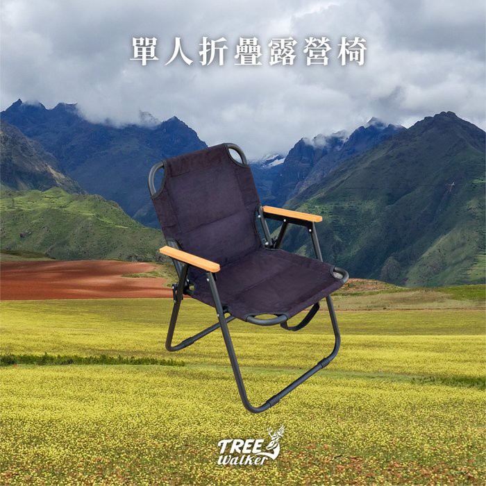 【Treewalker】單人折疊露營椅 麂皮絨折疊椅 折合椅 扶手椅 野餐椅 休閒椅 對折椅 折疊椅