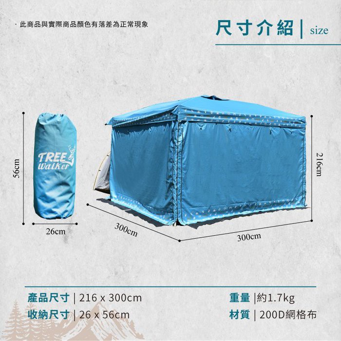 【Treewalker】露遊樂歡聚兩用圍布 網格邊布 客廳 炊事帳專用 遮陽防水 天幕 可搭營柱