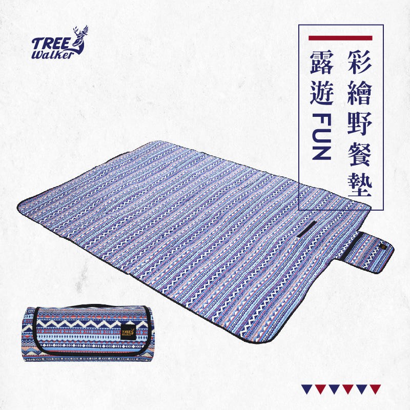 【Treewalker】露遊FUN彩繪野餐墊 200x145cm 底布防水 手提露營地墊 睡墊 防潮墊 爬行墊 遊戲墊
