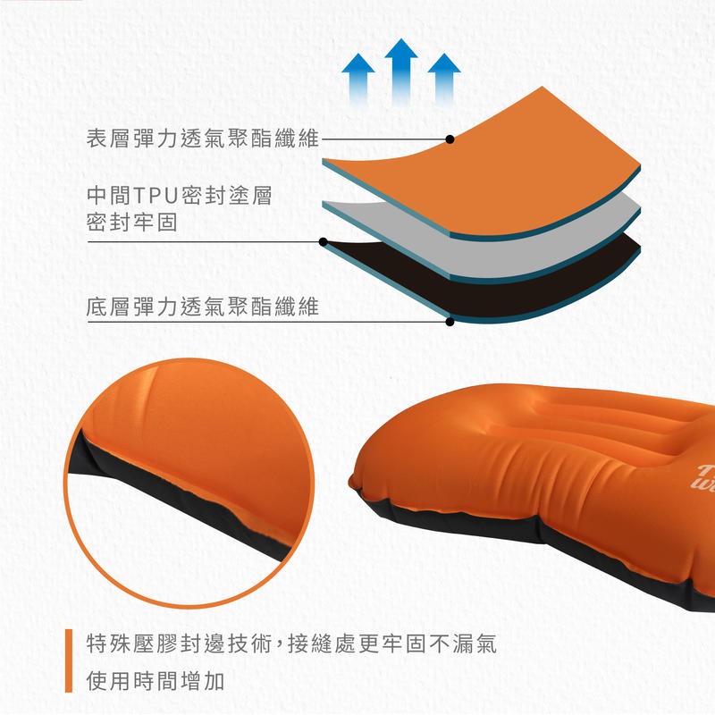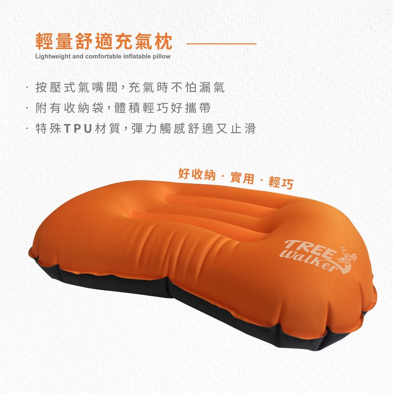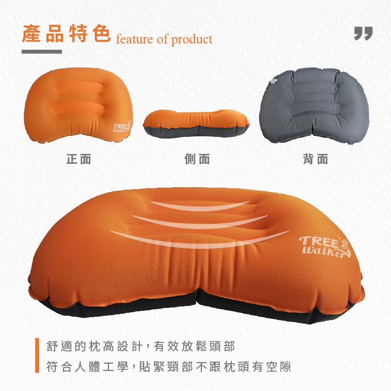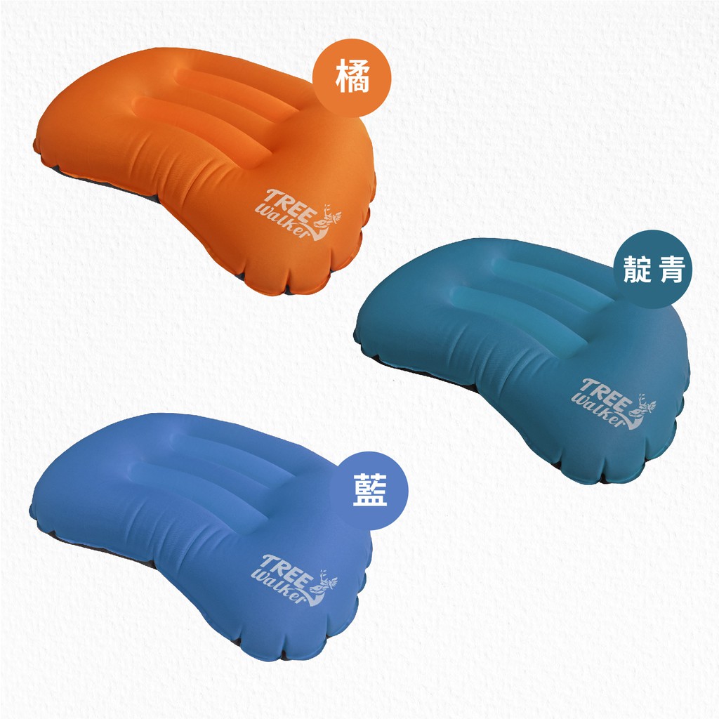 【Treewalker】輕量舒適充氣枕 新型氣嘴 單向充氣閥門 植絨充氣枕 午休枕 露營枕頭 旅行充氣枕 3色