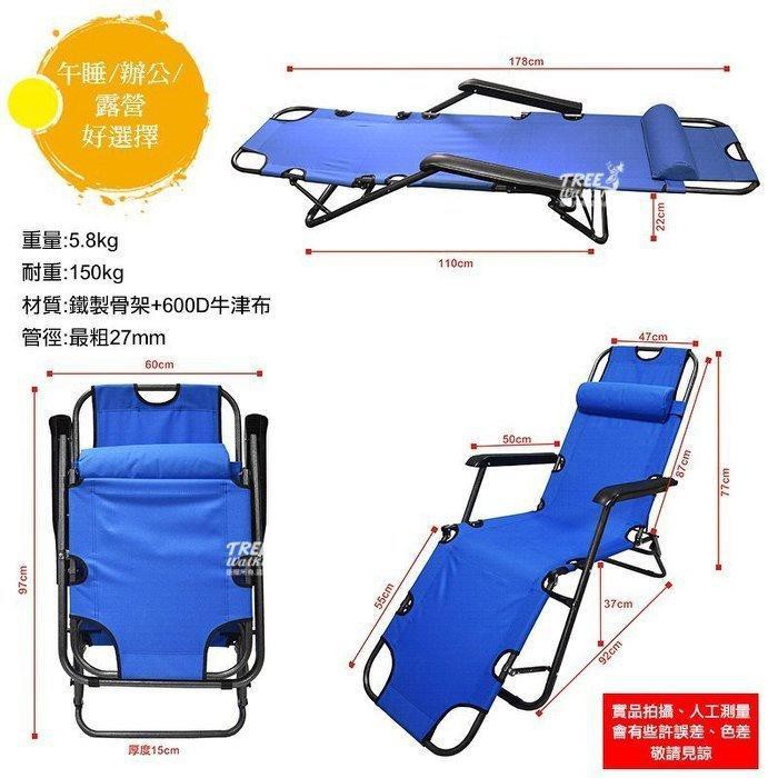 【Treewalker】三段式躺椅 (非無段式)行軍床 露營床 折疊扶手椅 附枕頭