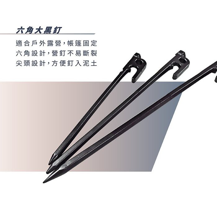 【Treewalker】六角大黑釘 高強度地釘 戶外加強黑釘 防風地釘 黑色營釘 帳篷天幕 地布