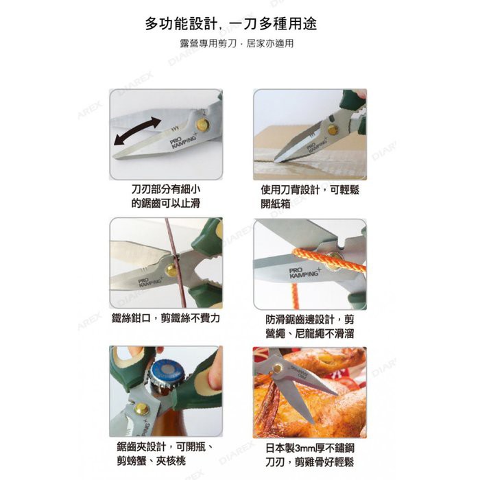 【Pro Kamping領航家】多功能剪刀 露營剪刀 萬用剪刀 雞骨食物料理剪刀 廚房不銹鋼剪刀 露營戶外野炊炊具