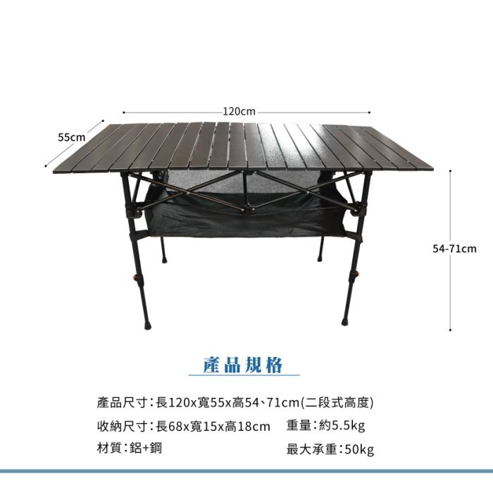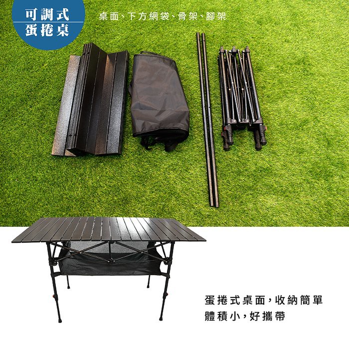 【Treewalker】便攜升降大黑鋁桌 蛋捲桌 加大 野營桌 鋁捲桌 摺疊桌 折疊桌 露營桌 二度式高度