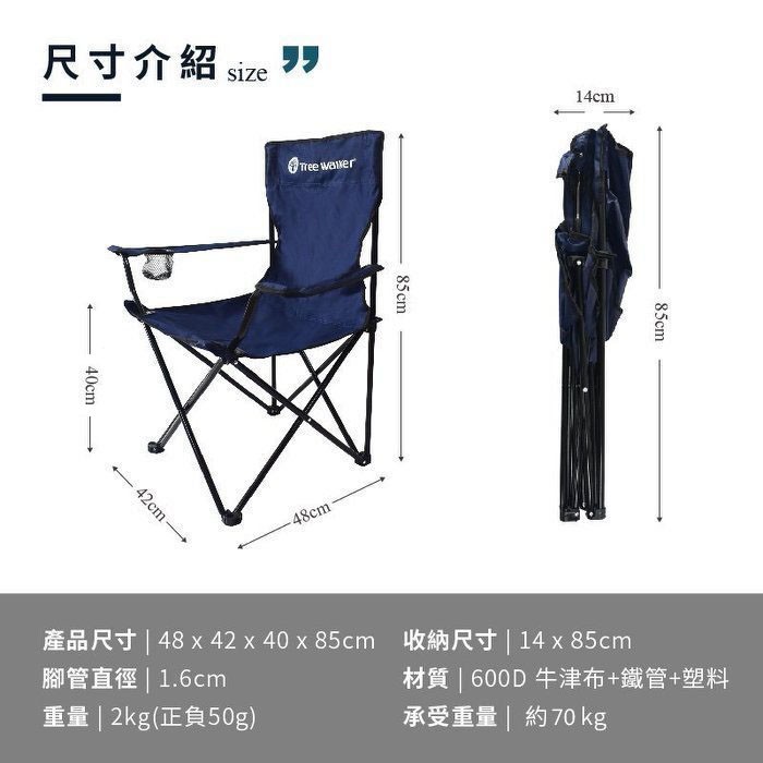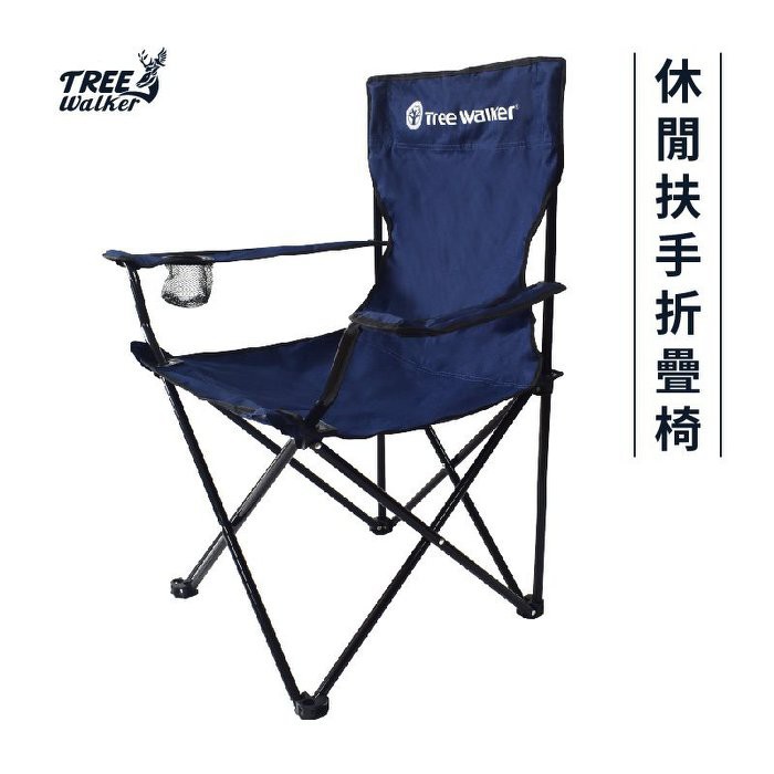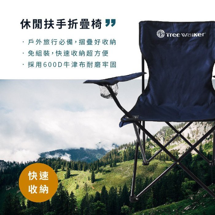 【Treewalker】便攜戶外折合椅 附杯架 折疊椅 扶手椅 烤肉椅 牛津椅 露營椅 600D津布