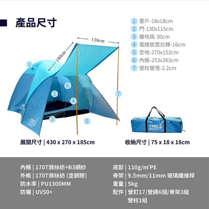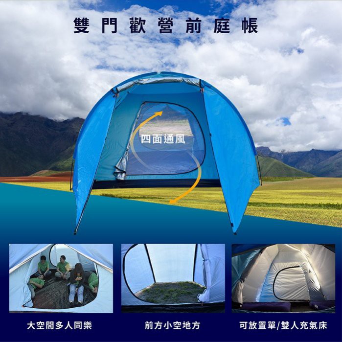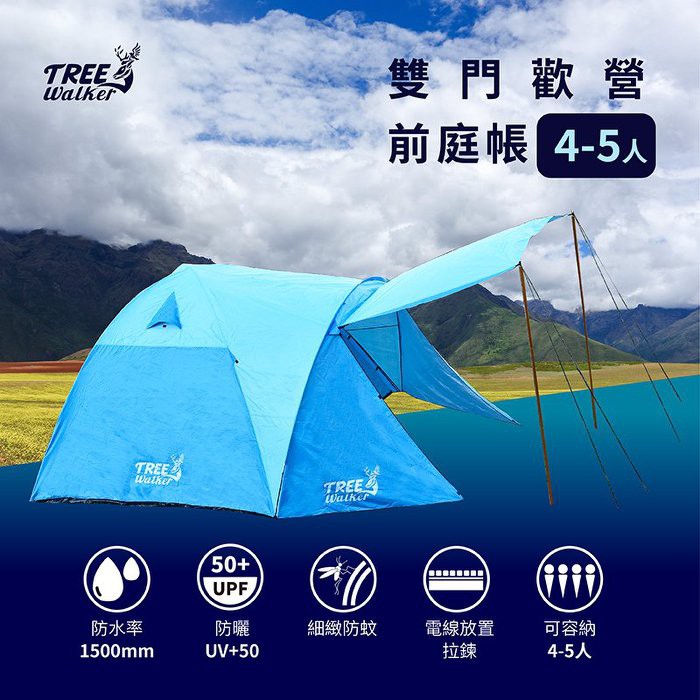 【Treewalker】鏕遊樂雙門歡營前庭帳 4-5人 非自動大型屋簷帳篷 大帳篷 帳棚 雙門帳