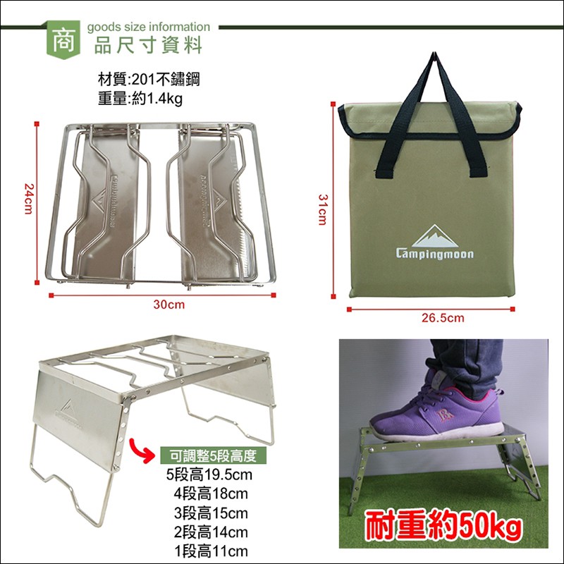 【Treewalker】高級不銹鋼防風爐架 五段式可調高度防風卡式瓦斯爐架(附600D牛津手提外袋)