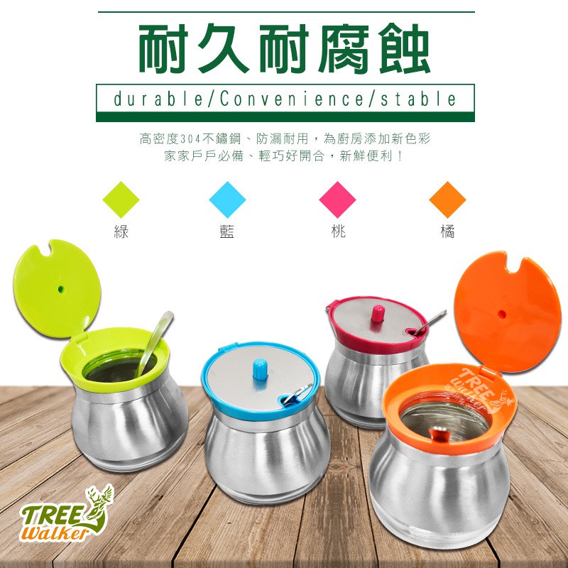 【Treewalker】典尚調味罐 304不鏽鋼 高密度 玻璃瓶身 廚房安心食器 香料罐(附湯匙)