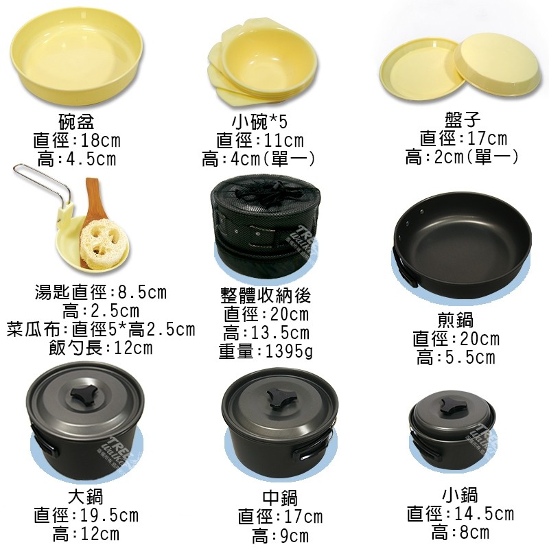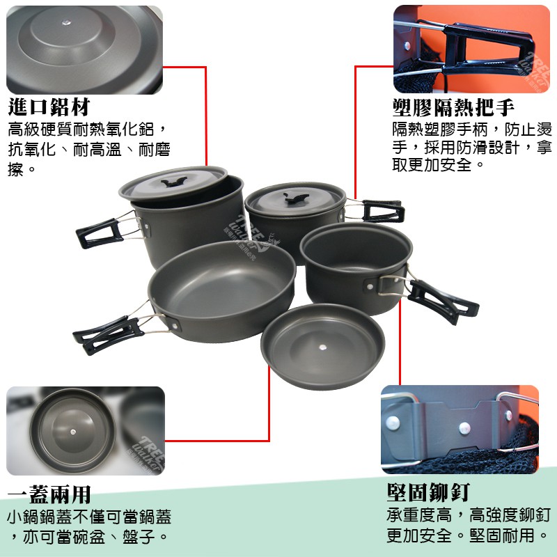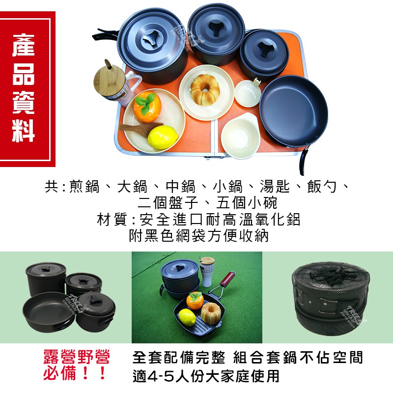 【Treewalker】高級野餐鍋具組 四-五人 鋁合金套鍋 餐具組 鍋具組 登山露營 煎盤 碗 盤 湯匙 飯勺