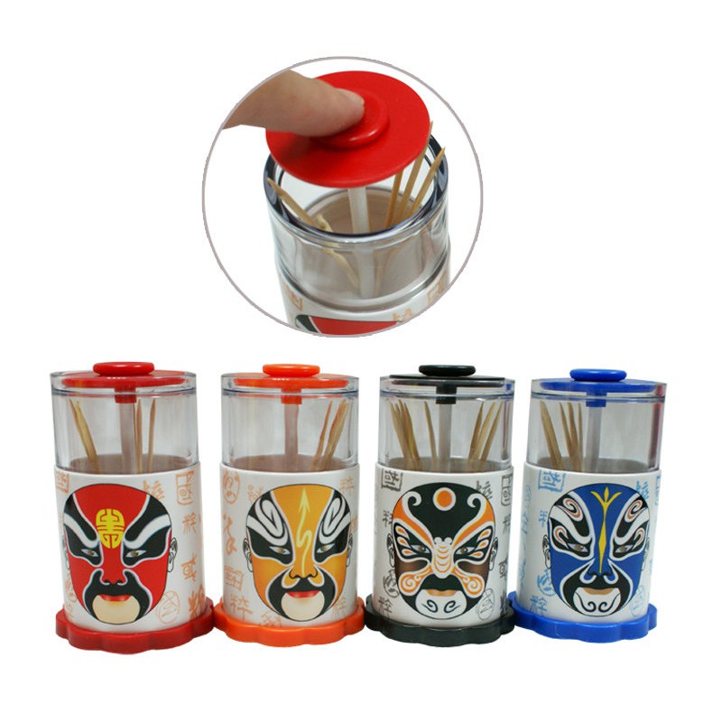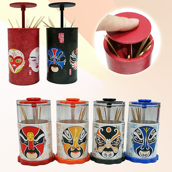 【Treewalker】臉譜自動牙籤桶 中國風臉譜透明按壓式牙籤罐。廚房居家車內餐桌特別的生日禮物 聖誕交換禮物