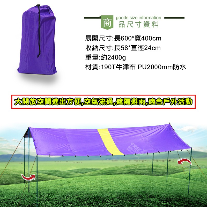 【Treewalker】典雅防水天幕帳 4x6米 400x600cm 銀膠防水遮陽 隔紫外線