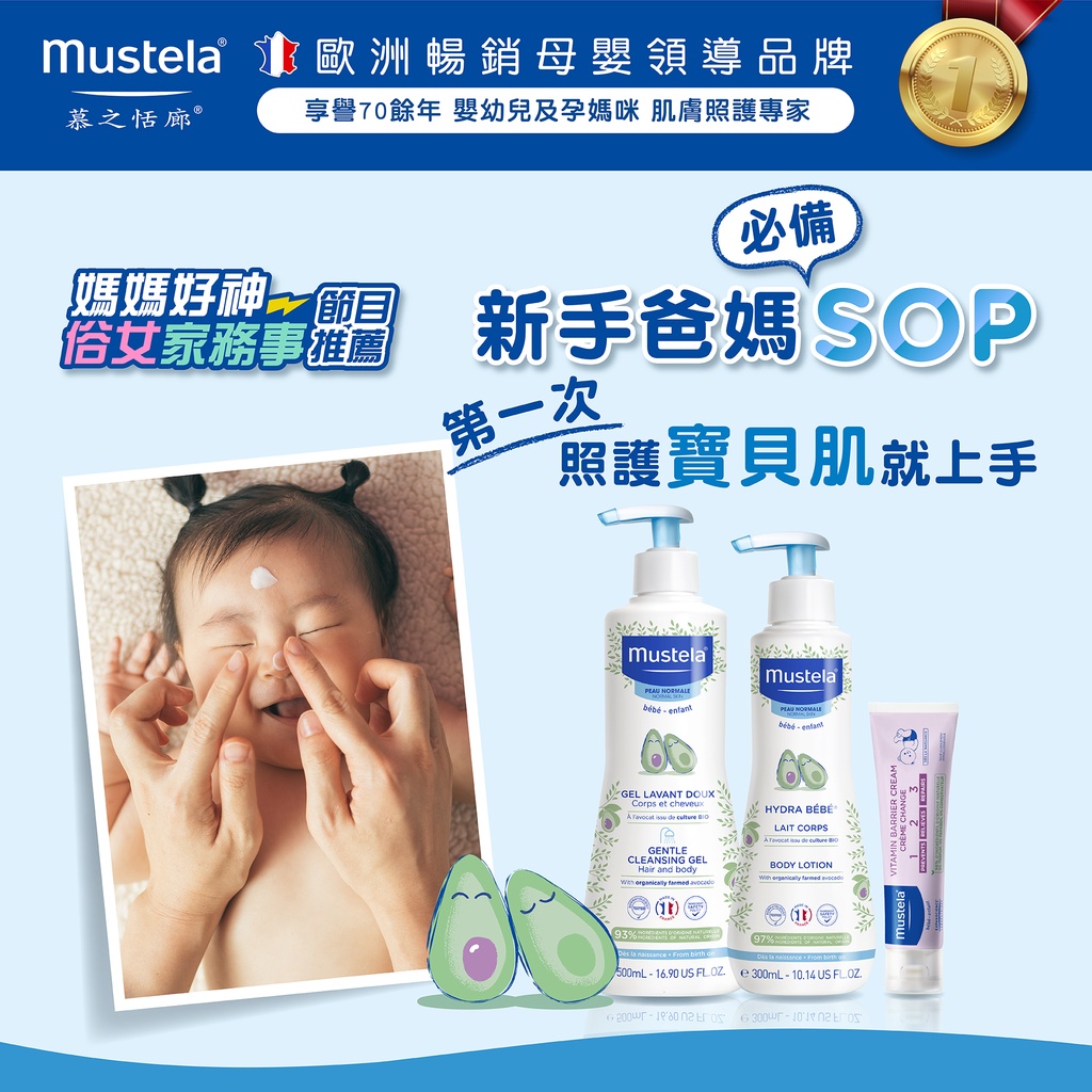 Mustela 慕之幼 新手爸媽必備SOP組(多慕雙潔乳+爽身潤膚乳+VBC護膚膏100ml屁屁膏) 慕之恬廊