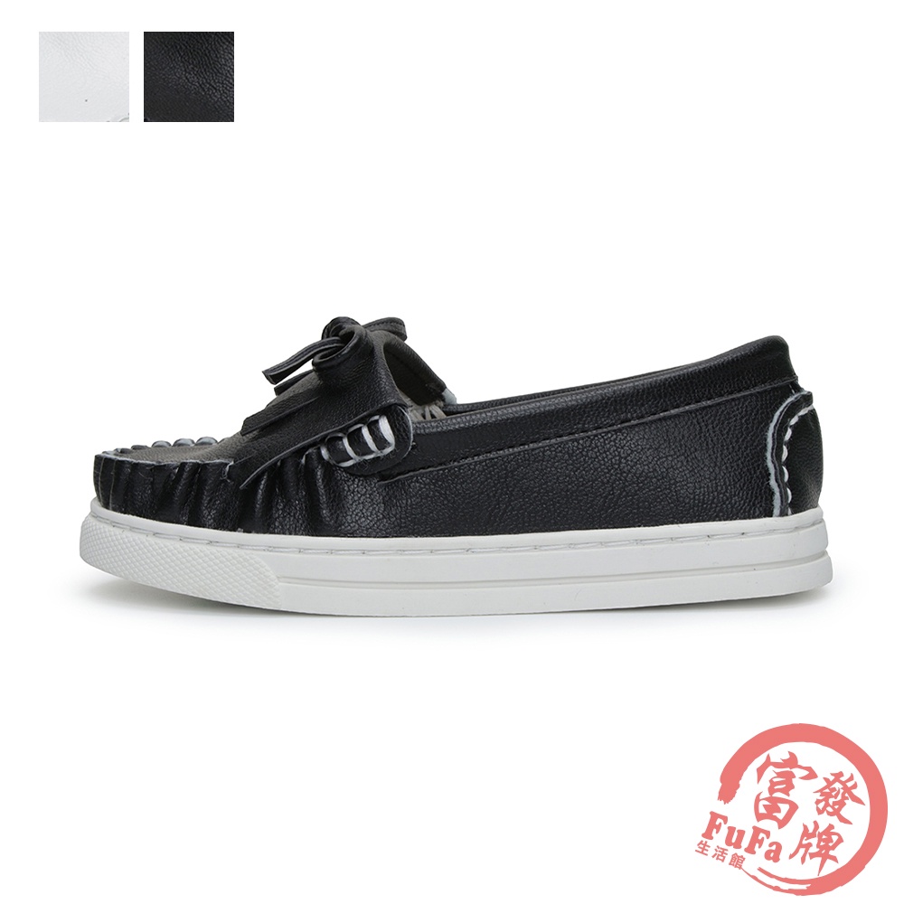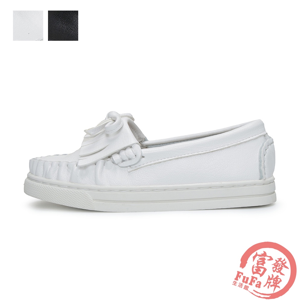 【富發牌】皮革感流蘇厚底懶人鞋 33BC40 兒童休閒鞋 懶人鞋 兒童便鞋 休閒鞋 兒童厚底鞋 防潑水休閒鞋 全白休閒鞋