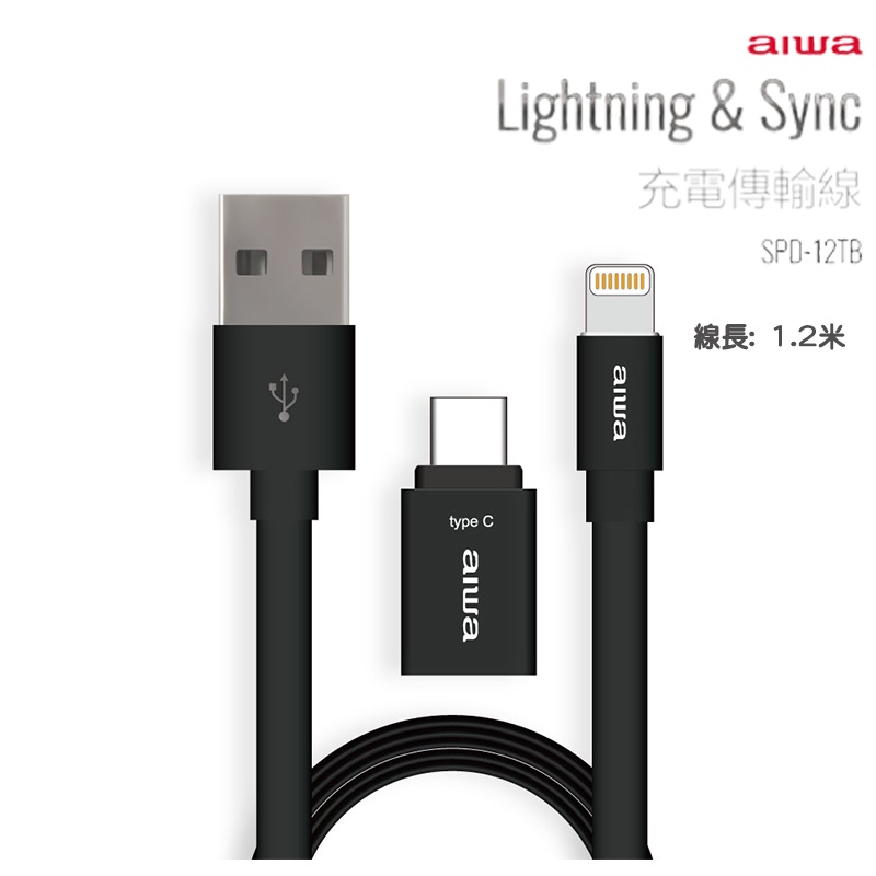 AIWA 愛華 APPLE充電傳輸線 內附Type-C轉接頭 SPD-12TB/18TB (1.2米/1.8米)
