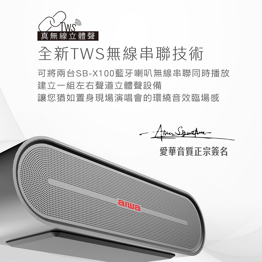 AIWA 愛華 便攜式藍牙喇叭 SB-X100 (黒/灰 2色)
