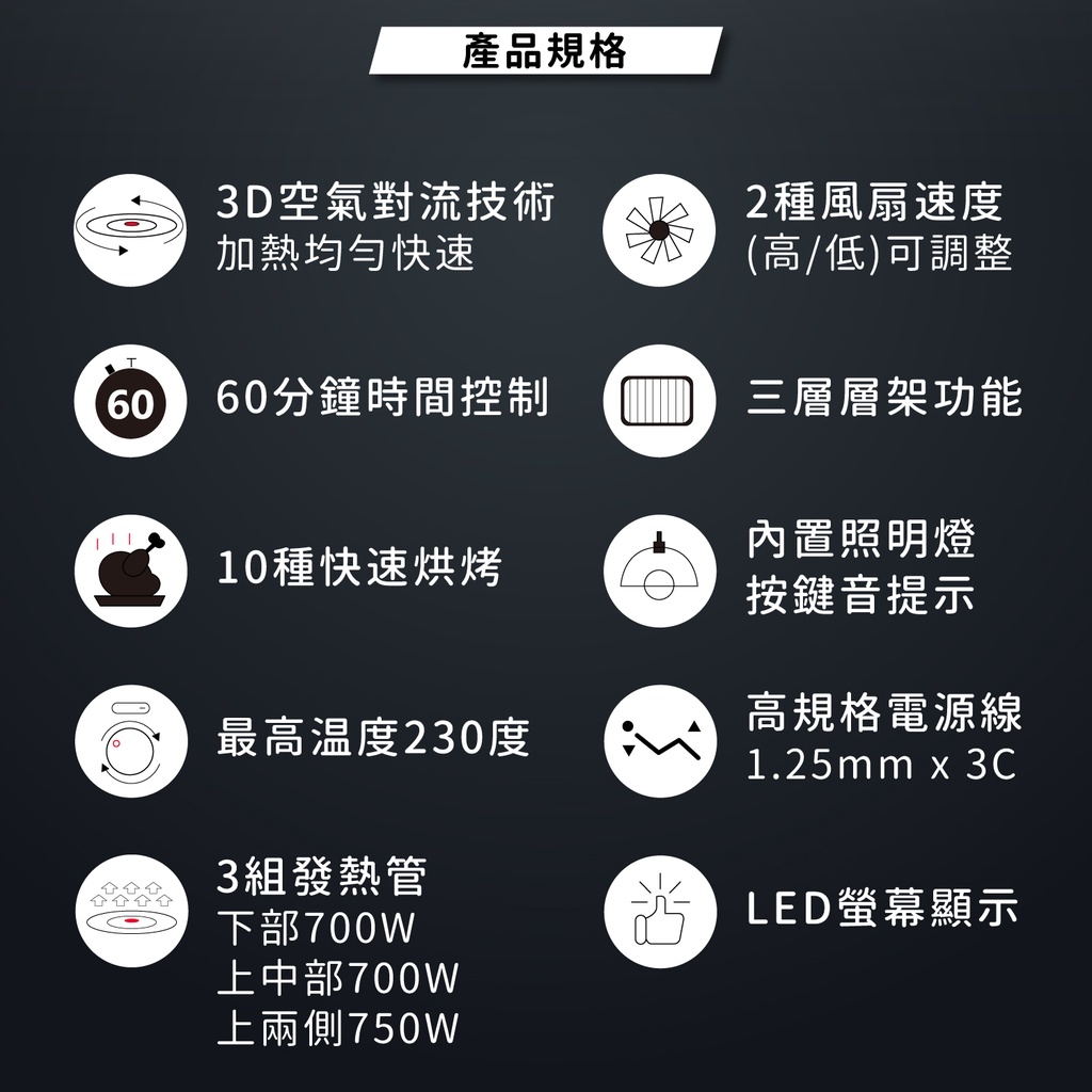 AIWA 愛華 23L 多功能氣炸烤箱 AF023T (黑/銀 2 色)