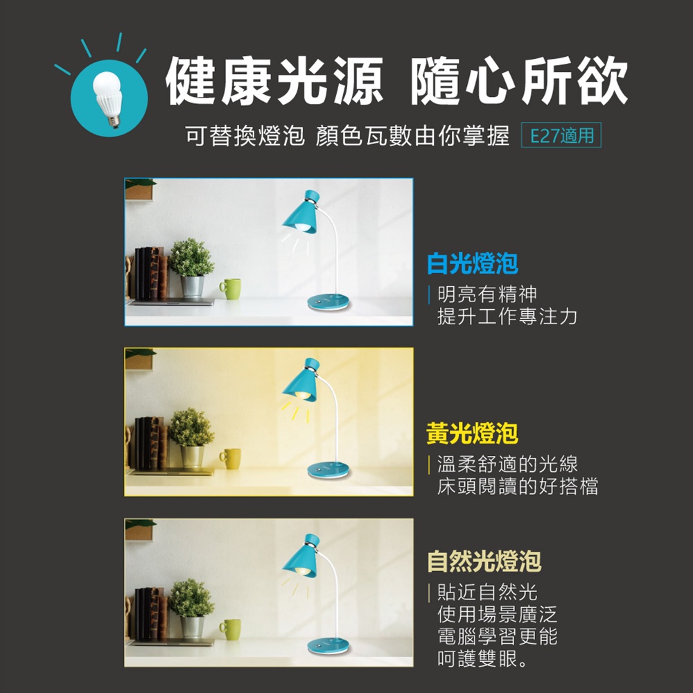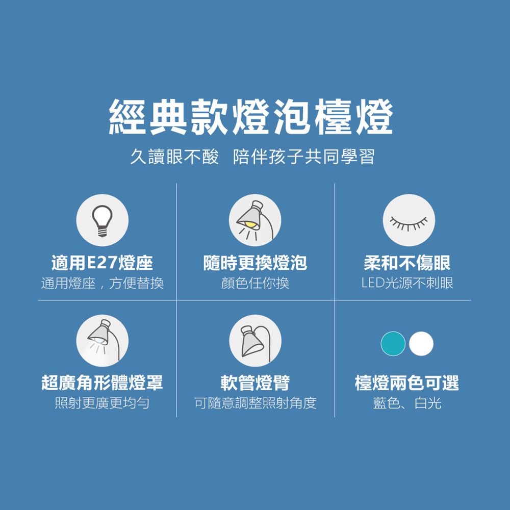 H-T-T LED護眼燈泡檯燈 HTT-932 (藍色/白色)