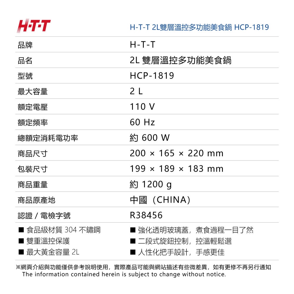 H-T-T 2L雙層溫控多功能美食鍋 HCP-1819 (白/綠 2色)