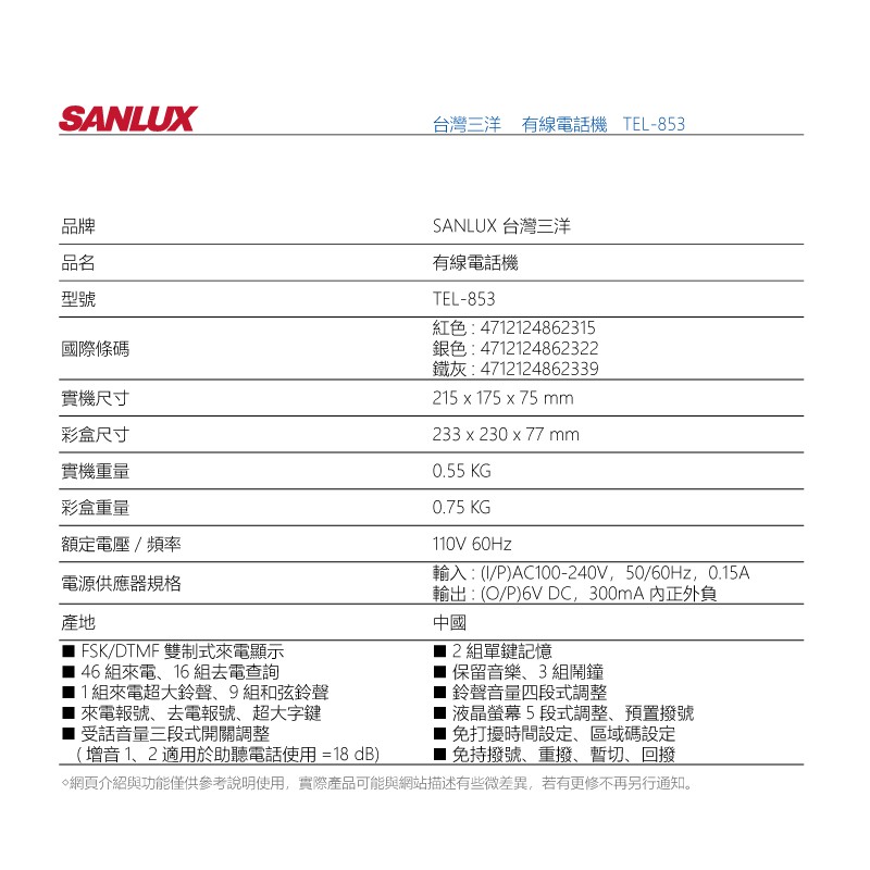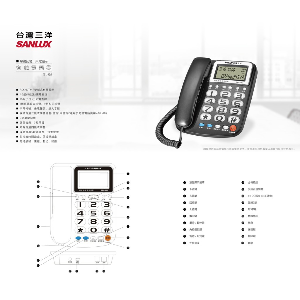 SANLUX 台灣三洋 有線電話機 TEL-853 顏色隨機