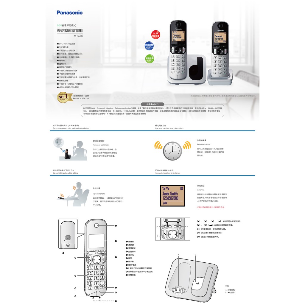 Panasonic 國際牌 免持擴音雙子機數位無線電話機 KX-TGC212TW