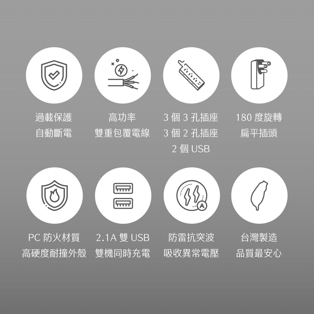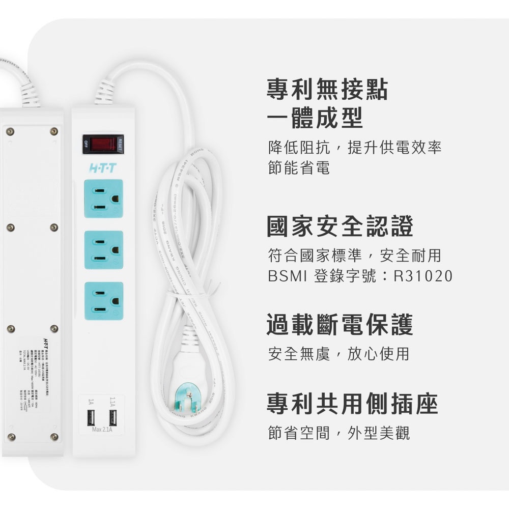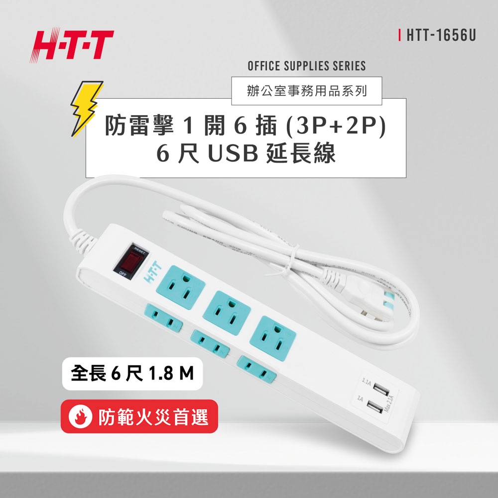 H-T-T 1開6插雙USB防脫落 6尺 延長線 HTT-1656U