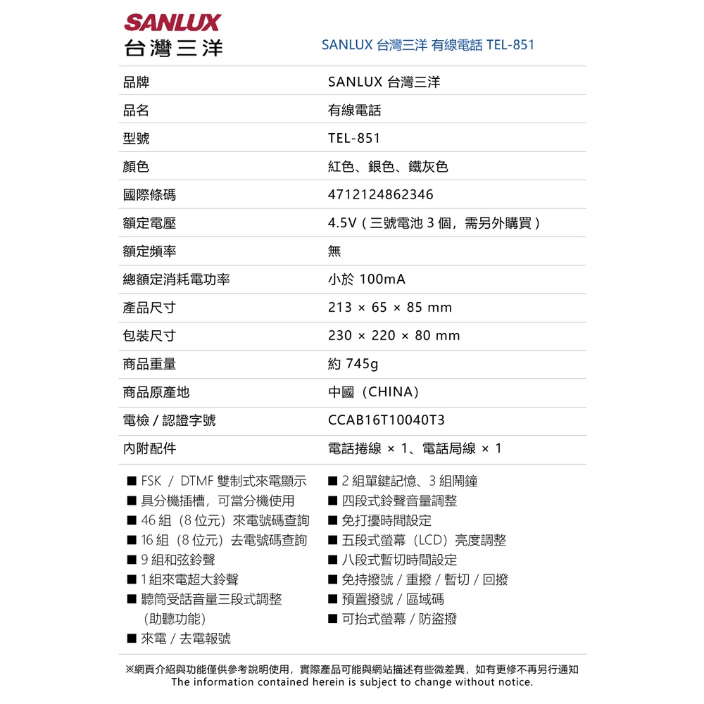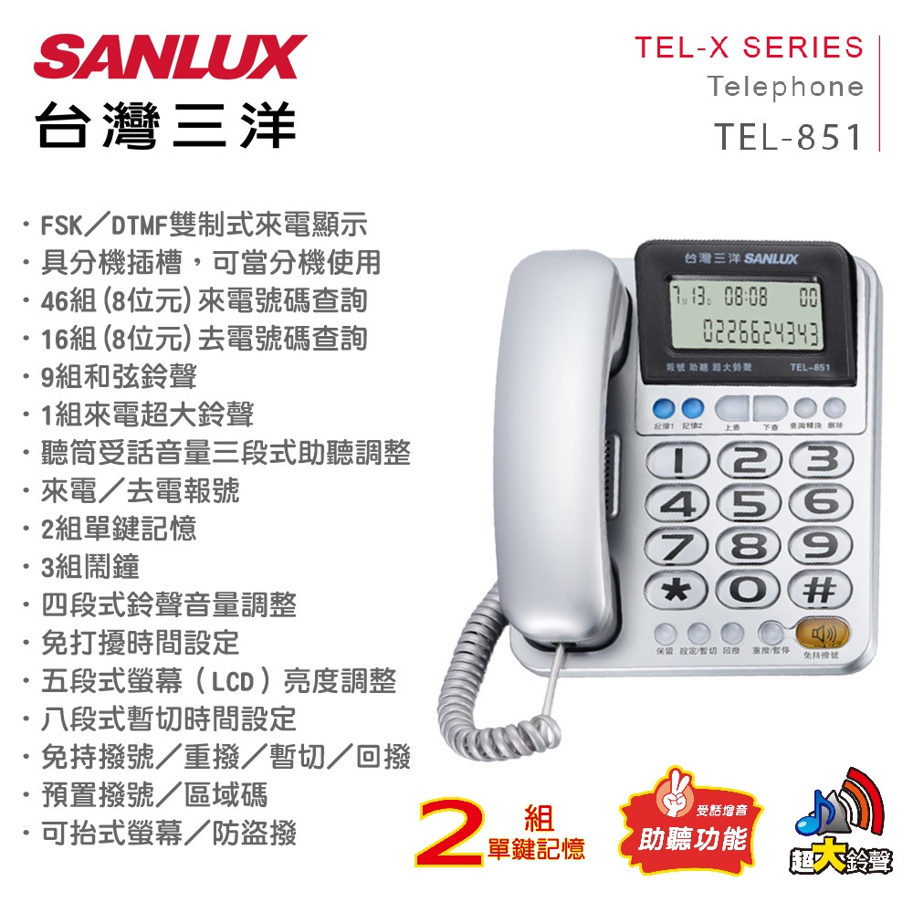 SANLUX 台灣三洋 來電報號助聽增音有線電話 TEL-851 顏色隨機