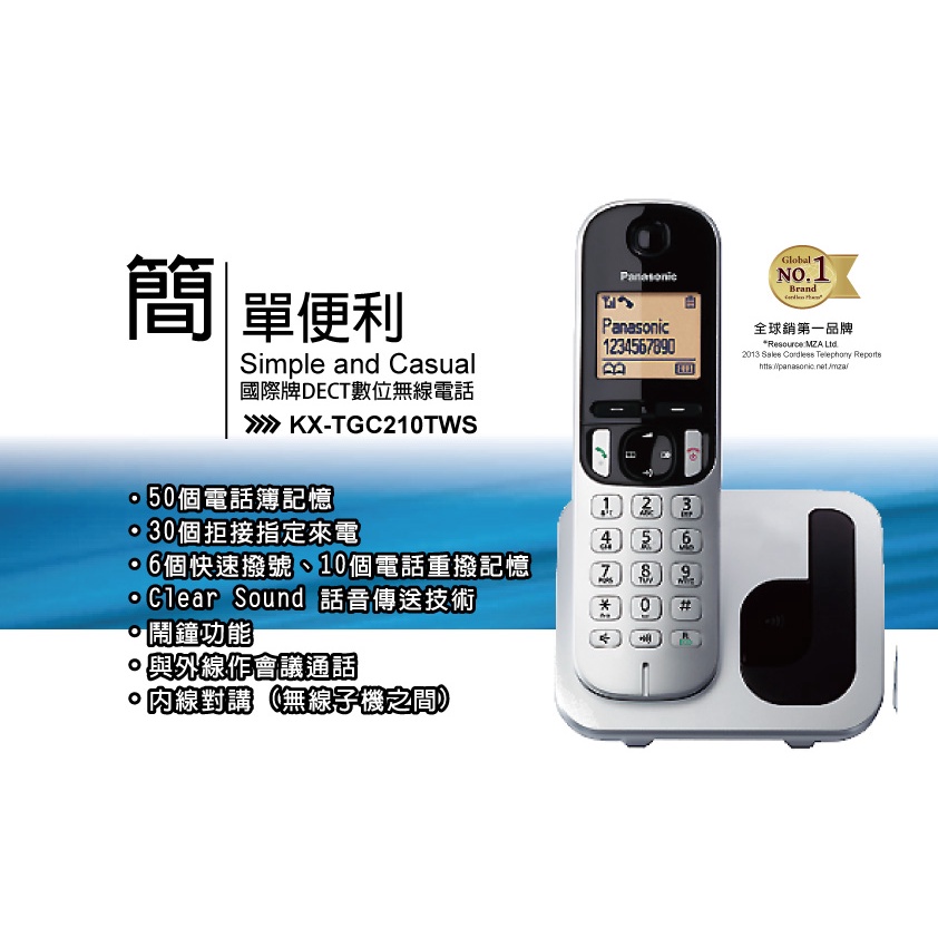 Panasonic 國際牌 數位無線電話機 KX-TGC210TW