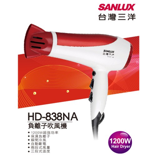 SANLUX 台灣三洋 負離子吹風機 HD-838NA