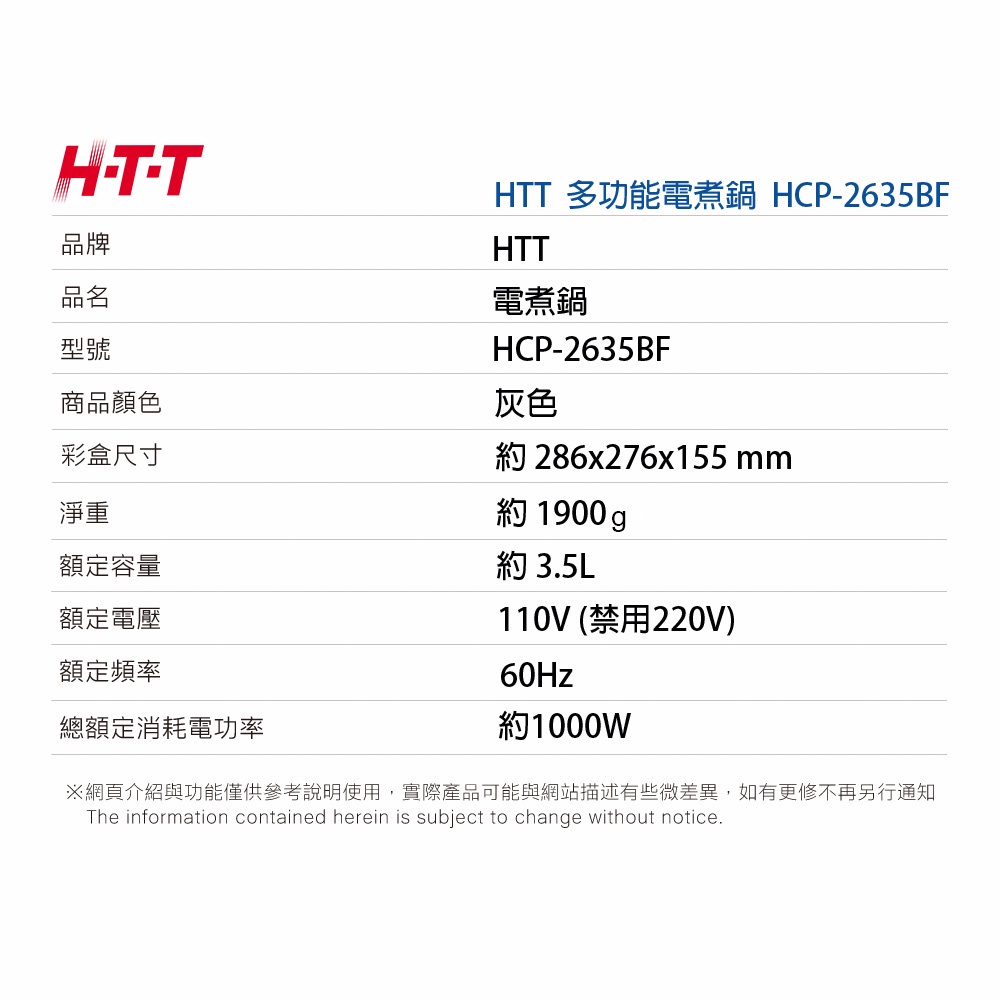 H-T-T 3.5L多功能料理鍋 HCP-2635BF
