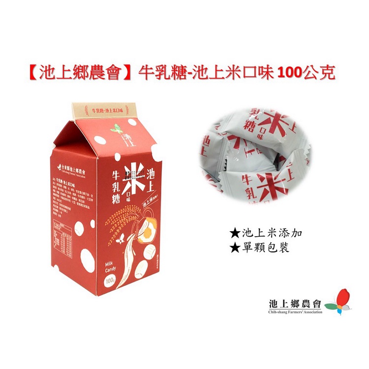 【池上鄉農會】牛乳糖-池上米口味 100公克/盒-台灣農漁會精選