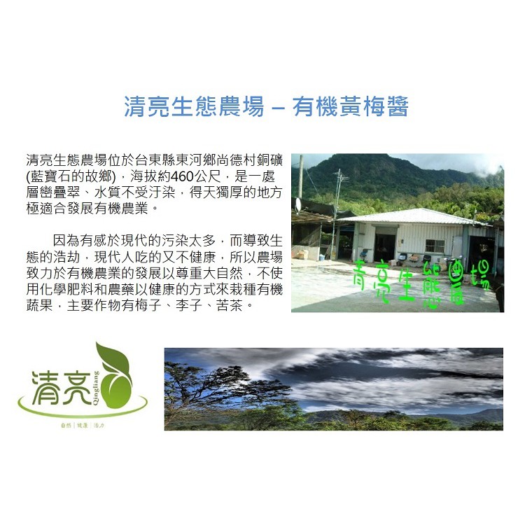 【清亮生態農場】有機黃梅醬320公克/瓶-台灣農漁會精選