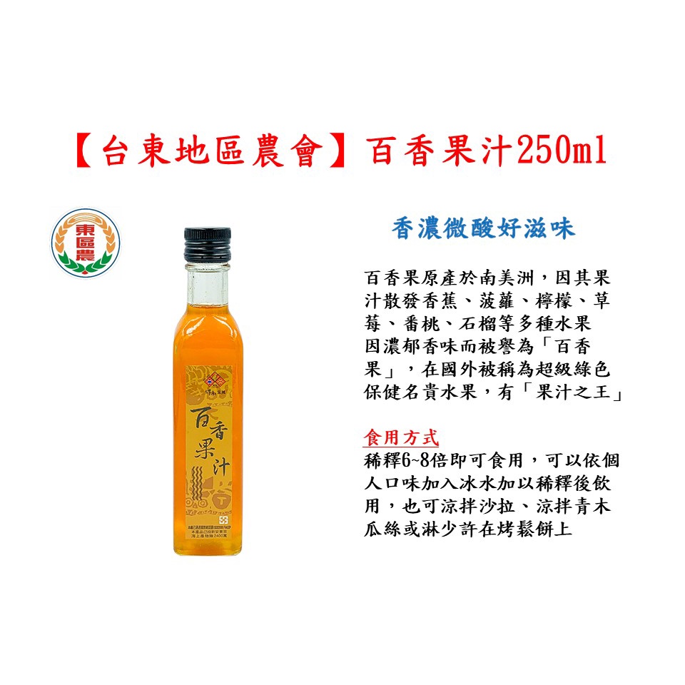 【台東地區農會 】百香果汁250毫升/瓶-台灣農漁會精選