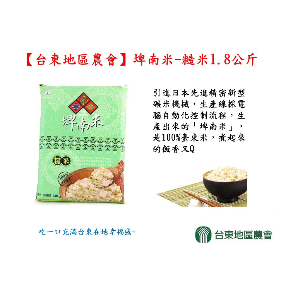 【台東地區農會】埤南米-糙米1.8公斤/包-台灣農漁會精選
