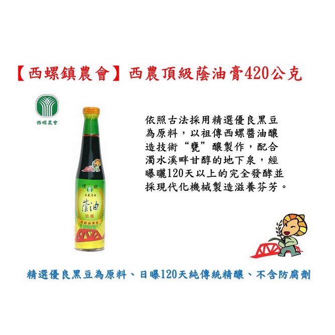 【西螺鎮農會】西農清健頂級蔭油膏(420公克/瓶)-台灣農漁會精選